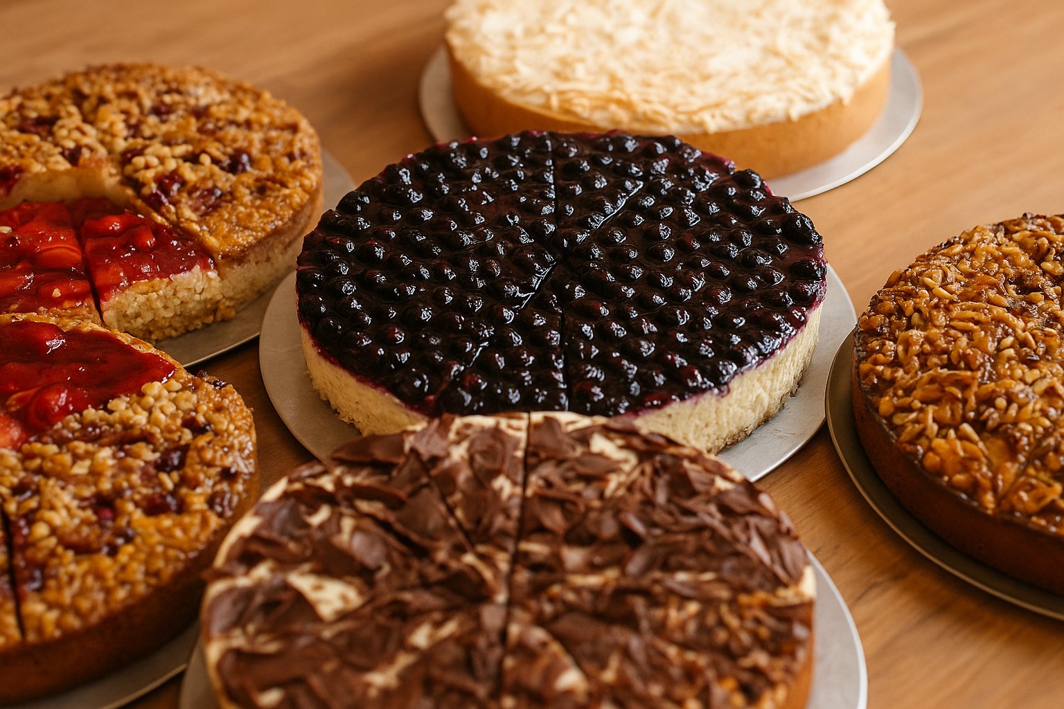 Ob Hochzeit, Geburtstag, Jubiläum oder Firmenfeier – unsere handgefertigten Torten, Kuchen und süßen Kleinigkeiten machen jeden Anlass unvergesslich. Neben klassischen und ausgefallenen Tortenkreationen bieten wir auch feine Kuchen, herrlich duftende Zimtschnecken, knusprige Croissants und liebevoll verpackte Mitbringsel – perfekt zum Verschenken oder selbst Genießen. Alles kann auf Wunsch individuell bestellt werden.